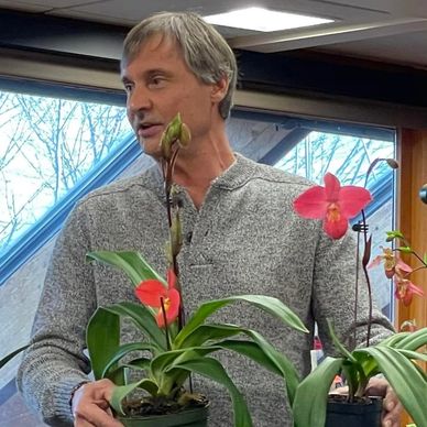 Renowned breeder of Paphiopedilum lady's slipper orchids and Chicagoland nurseryman Arnie Klehm will be our featured in-person speaker this month.